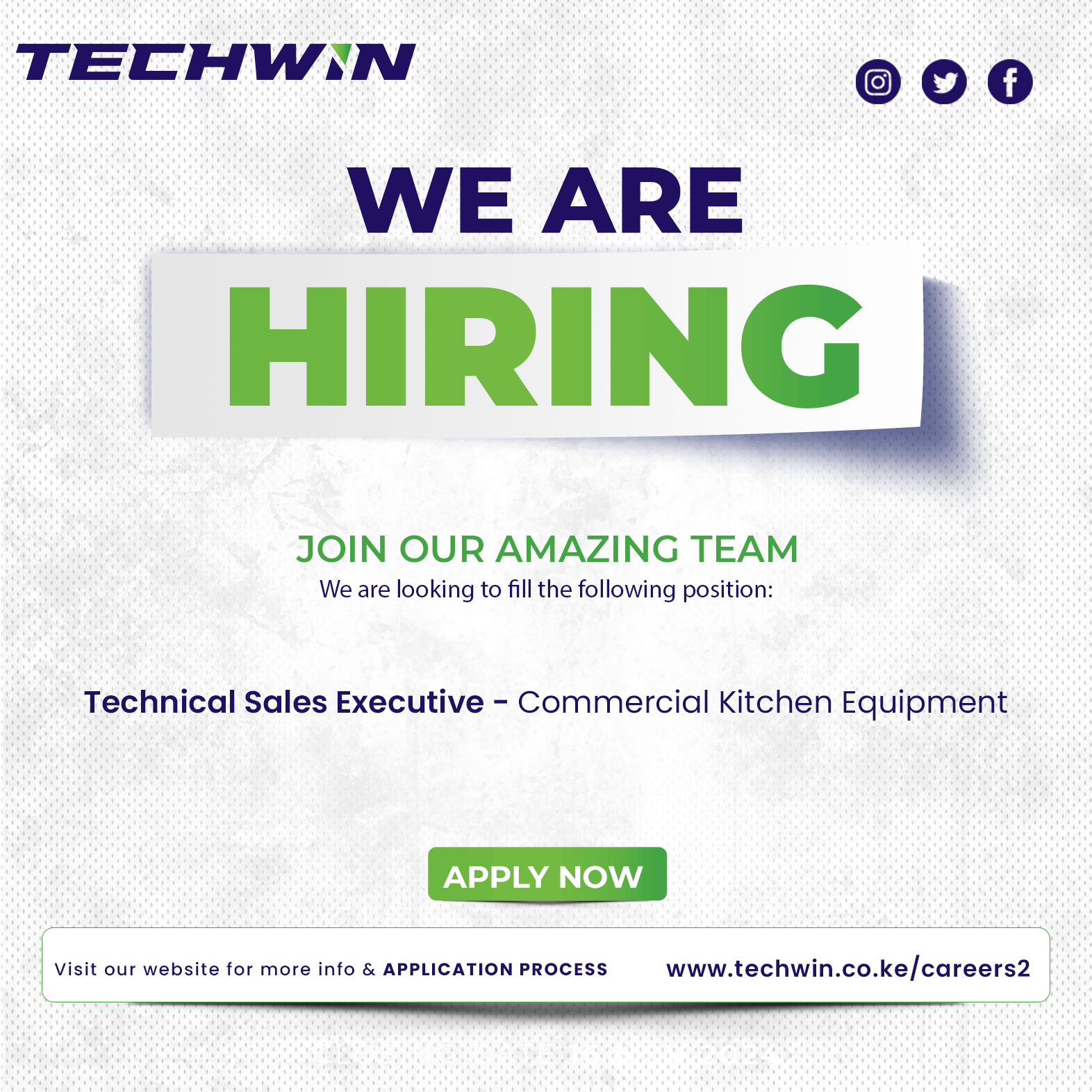 TECHWIN Limited is a professional technology developing company that engages in the manufacturing of stainless-steel products in the dairy, hospitality, healthcare, and construction industries as well as the supply and distribution of solar and energy-related equipment. We are looking for a Technical Sales Executive – Commercial Kitchen Equipment to join our Sales Engineering Department. He/she will be tasked with generating sales and expanding market for commercial kitchen equipment and appliances.