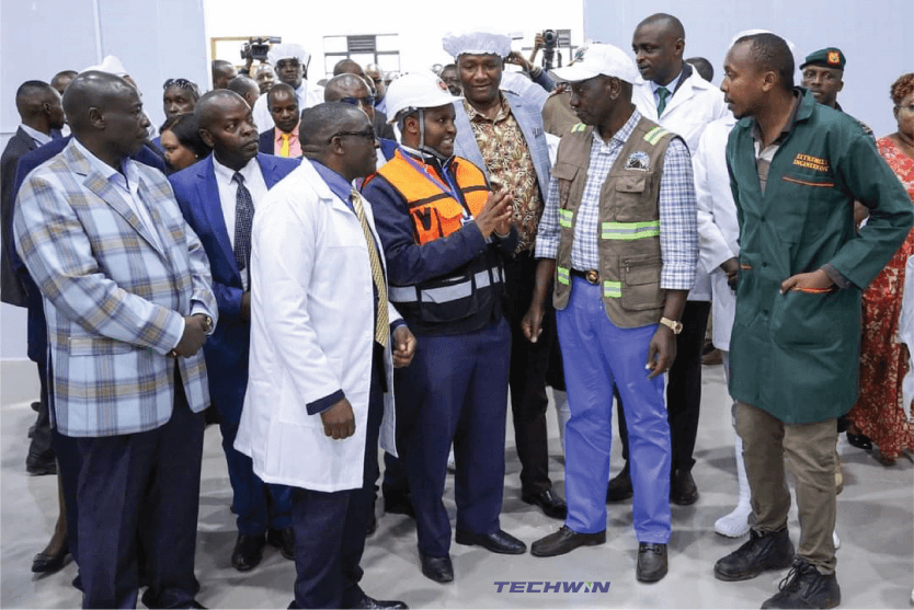 Eng. John Wanjohi, (Director of Projects and Technical Services at Techwin Limited), explaining to the President of Kenya,